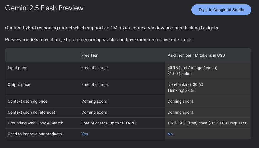 目前有两个预览版,Gemini 2.5 Flash Preview和Gemini 2.5 Pro Preview。