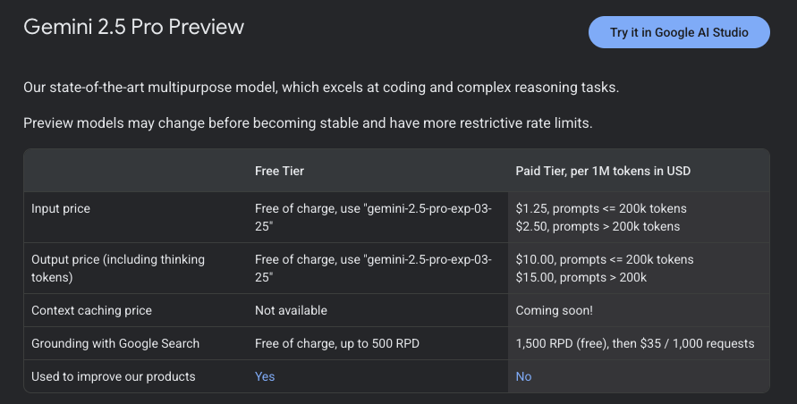 | 模型名称 | Gemini 2.5 Flash Preview | Gemini 2.5 Pro Preview |