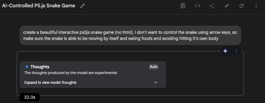 我们让Gemini 2.5 Pro Previw来做一个贪吃蛇小游戏。