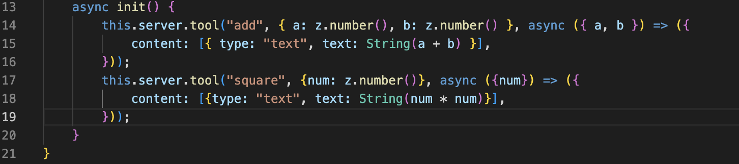 本质上 MCP Server是一个http服务器,会响应http请求并返回一个http Response,demo项目里用“hono”框架来响应http请求,这里我就不展开了。我们直接来看“Add”这个工具是怎么实现的。
