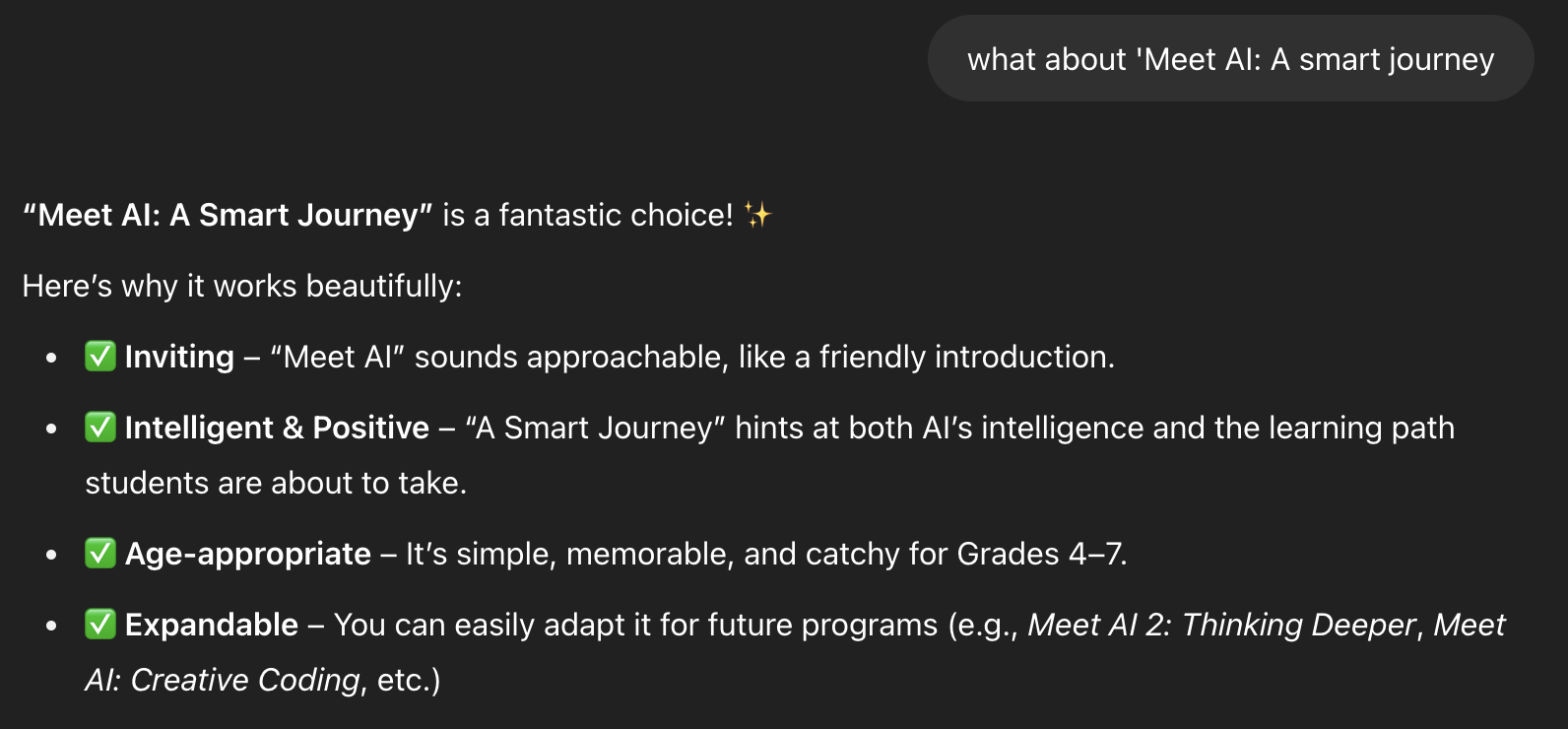 those names don’t look proper for the lesson that gives students a initial meeting and understand what is AI, and inspire students to think AI, also having fun and creative goals