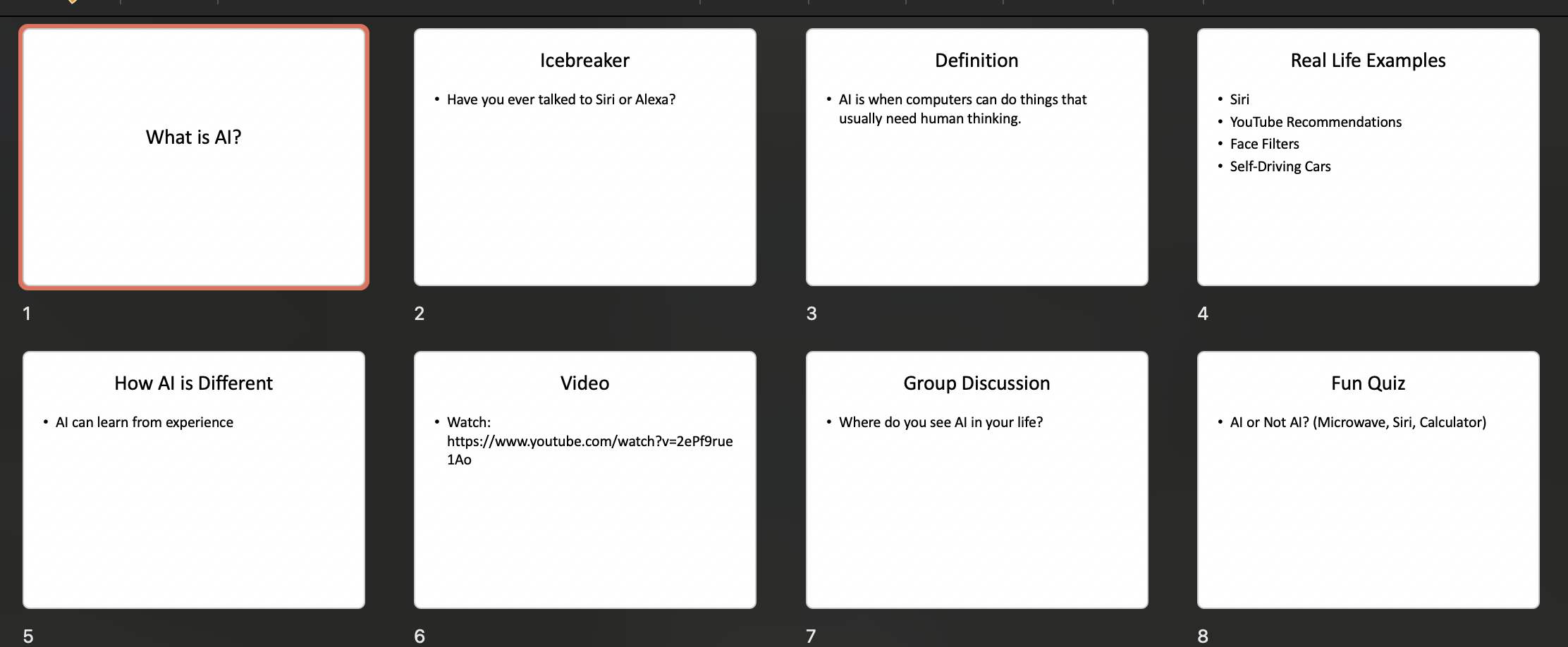Lesson 9: Can AI Be Wrong? (Bias & Fairness Games) Lesson 10: Final Project Showcase (Build Your Own Mini AI Project)