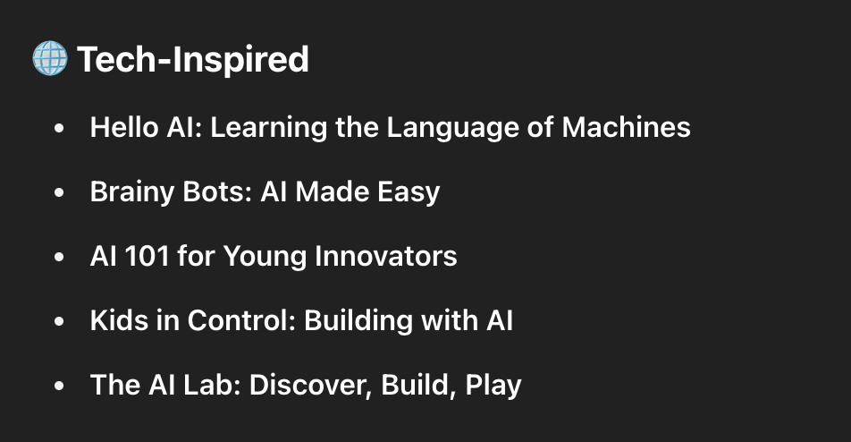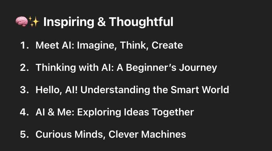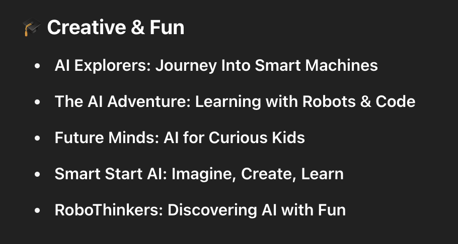 can you give a fancy name for the AI lesson? give me some options for choosing